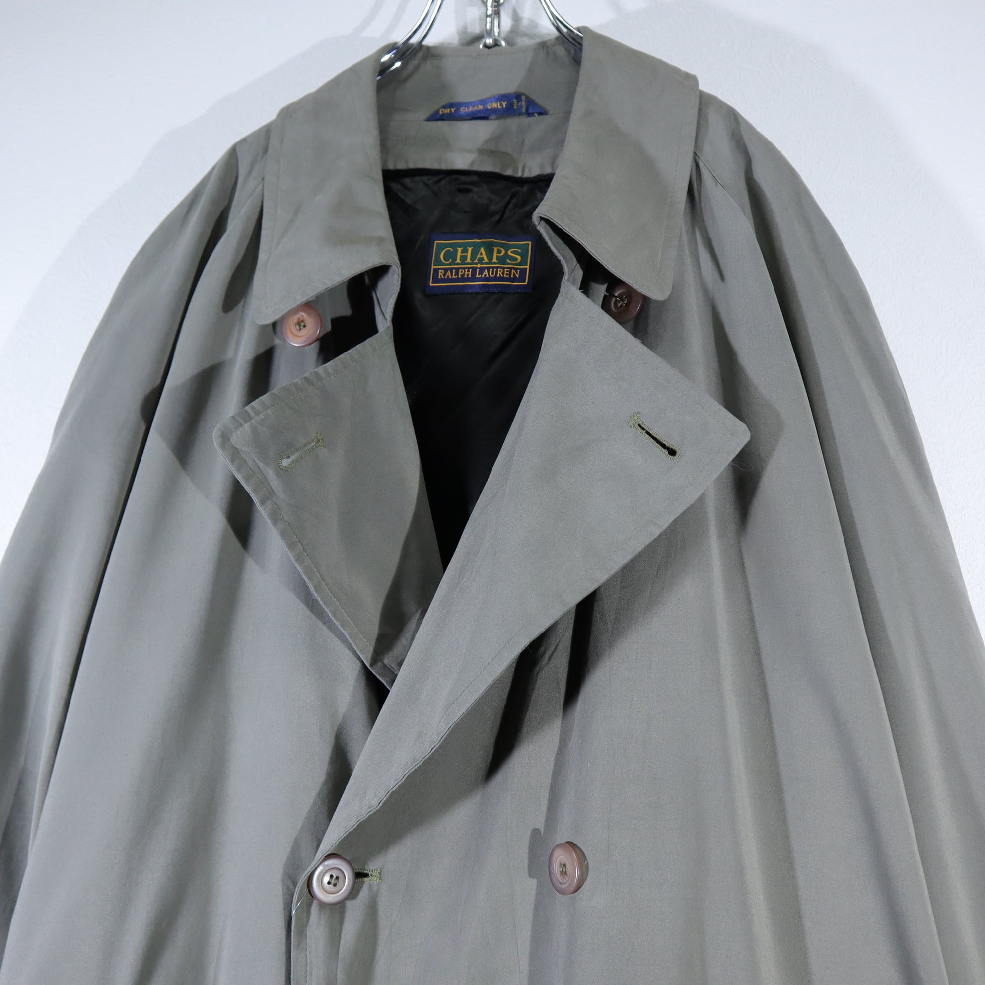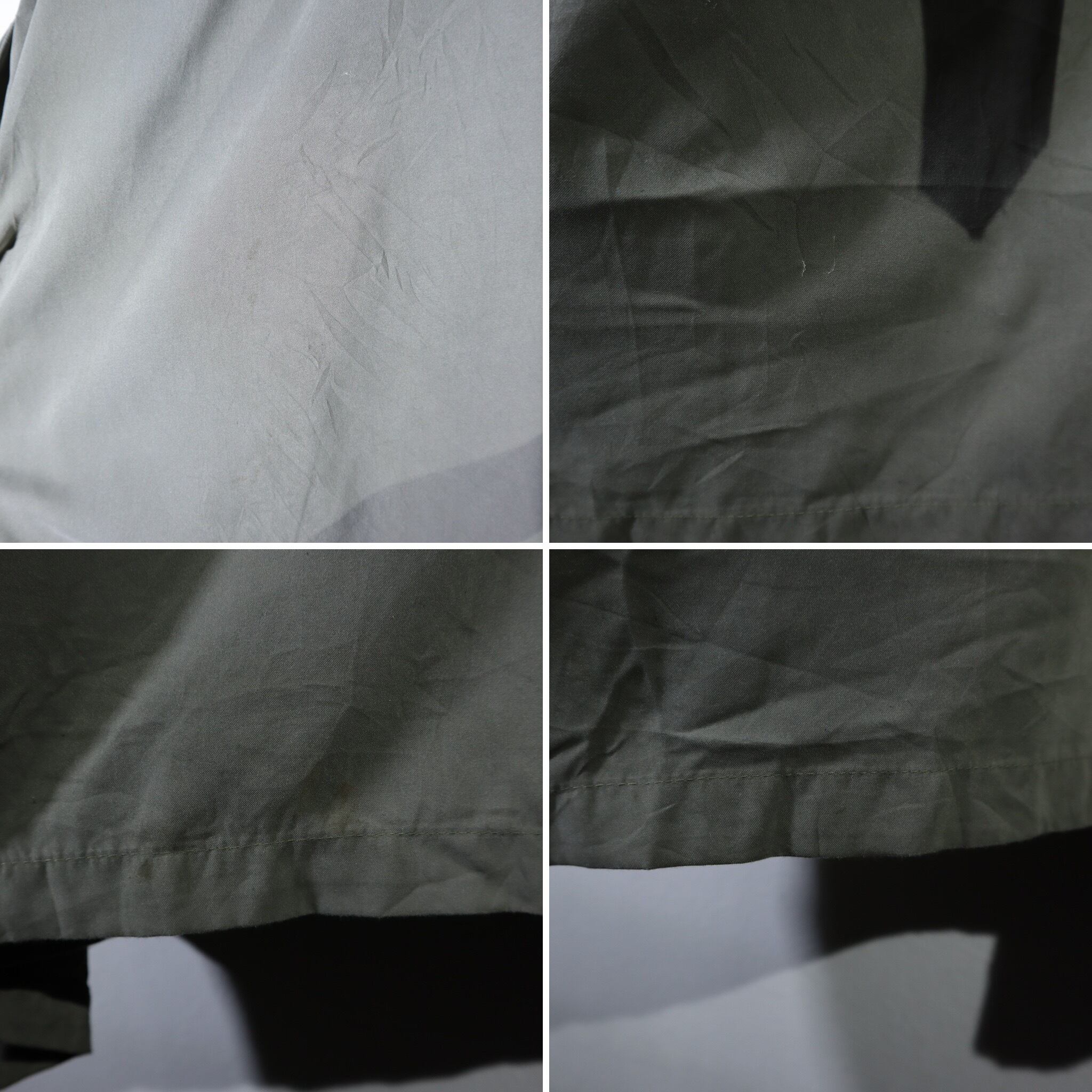 写真のように裾などところどころに汚れがあります。また襟裏のボタンが割れていますのでご注意下さい。