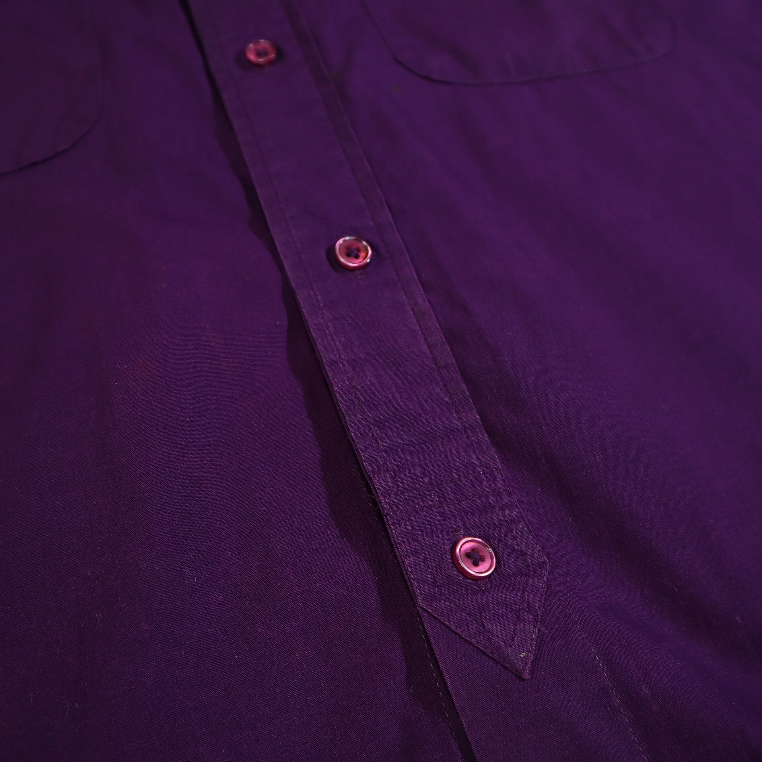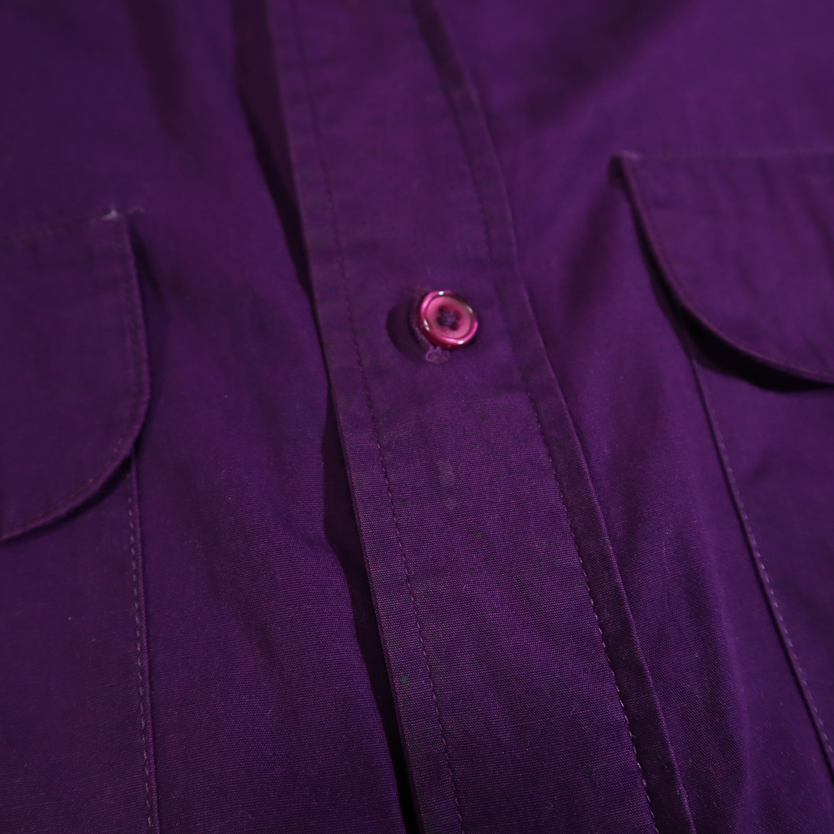 写真のようにボタン付近や袖に軽度の汚れがあり、袖や襟あたりに擦れのようなものがありますが古着特有の風合いとしてお楽しみいただけるレベルかと思われます。