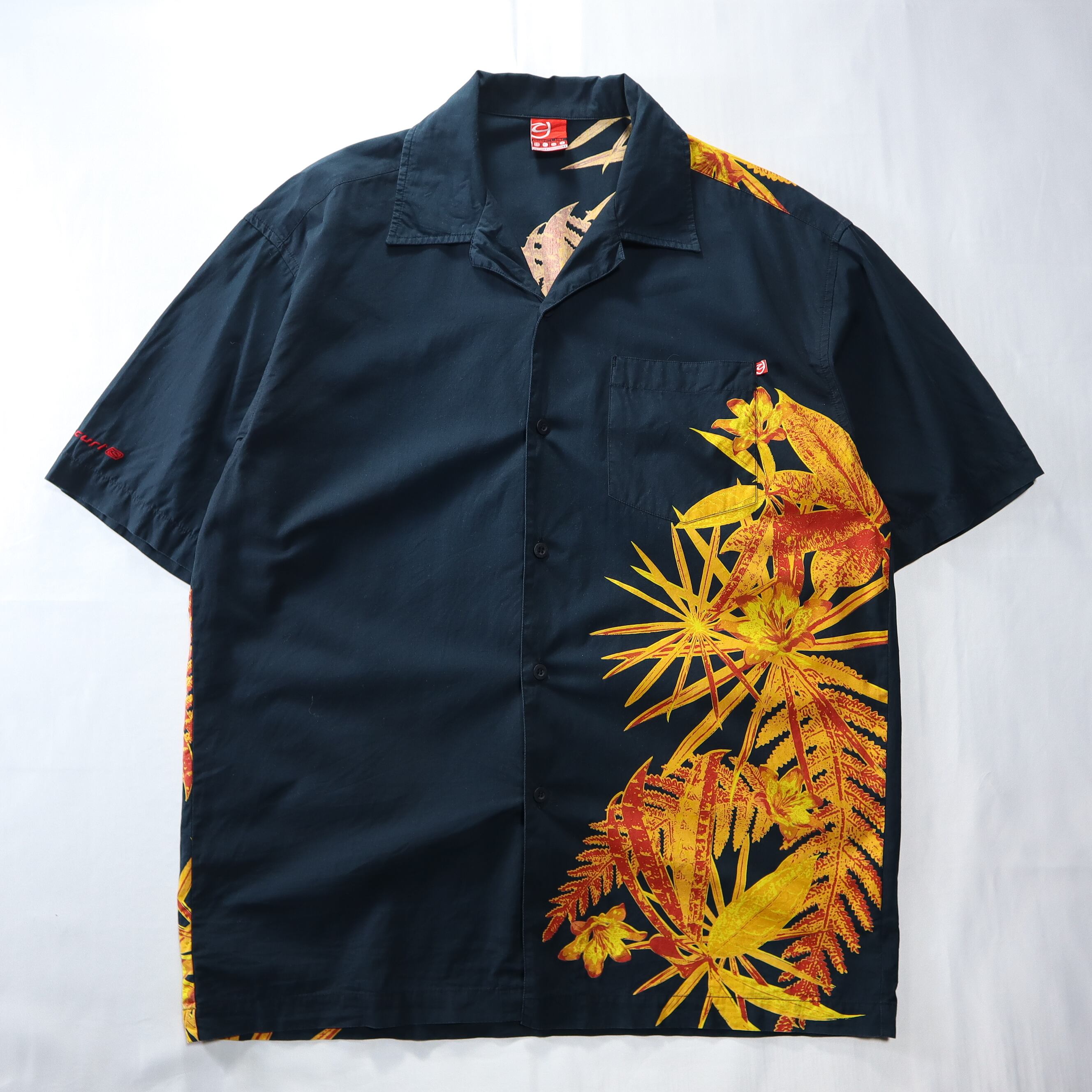 アシンメトリーデザインのデザインシャツ。
